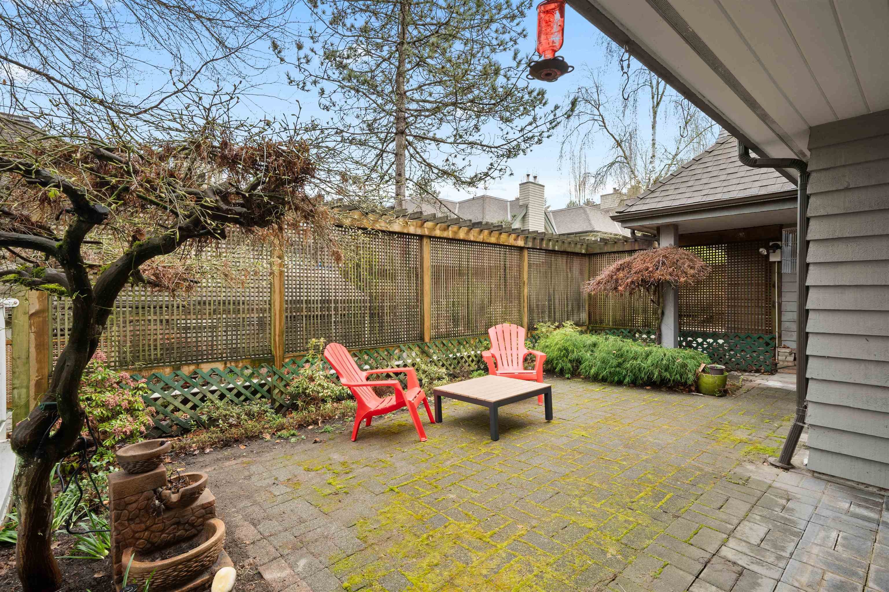 HUGE two bed, two bath SINGLE LEVEL corner townhome with MASSIVE over 500 sq. ft. private patio facing the quiet inner courtyard in a centrally located, yet quiet area of Burnaby. Bring your renovating ideas! The property comes with the PERFECT floorplan which allows for two bedrooms on opposite sides, an expansive living room, formal dining room and a spacious kitchen. There’s tons of space for storage inside the unit, as well as a large storage locker. Stainless steel appliances, side by side washer / dryer and GAS fireplace! TWO parking plus tons of street parking nearby is just the icing on the cake! Amenities include gym, pool, hot tub & social room. Centrally located in a quiet oasis, close to shopping, transit, Vancouver, Brentwood, Metrotown, BCIT & Hwy.